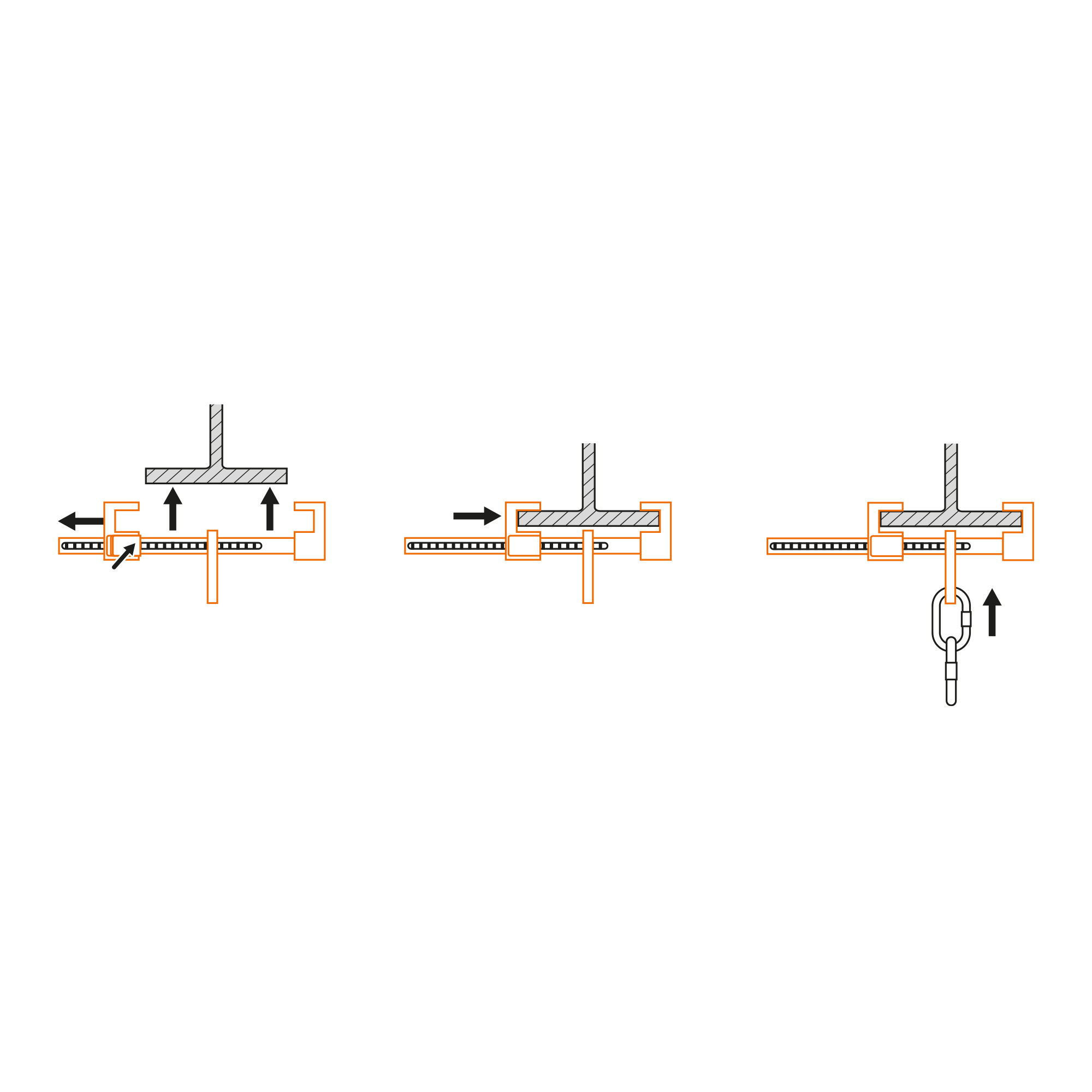 Mobil och justerbar förankringspunkt En lätt, mobil och justerbar förankringspunkt på balkprofiler. Regleras enkelt med sidotryck mot balken på förankringsfästet övre eller nedre del.